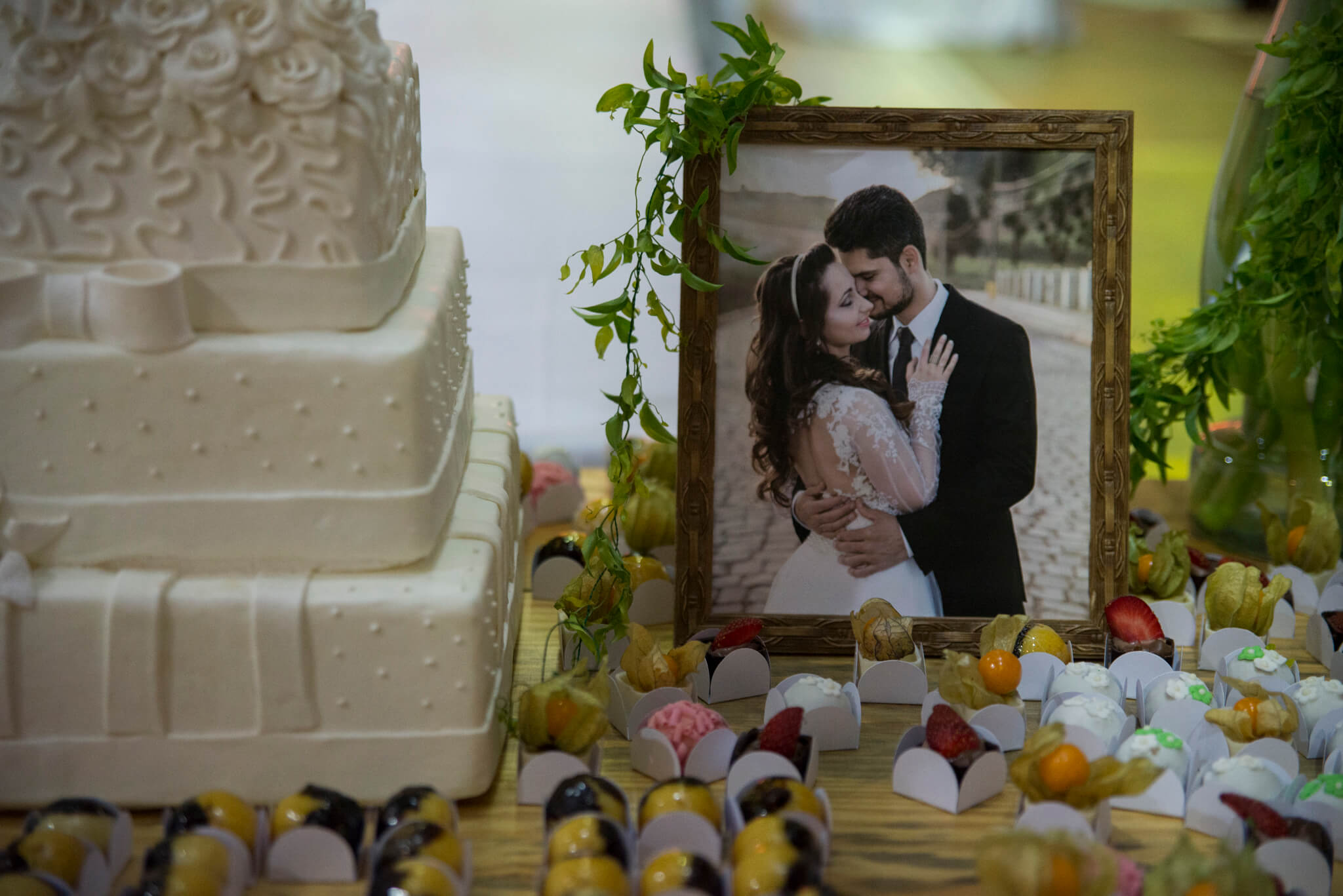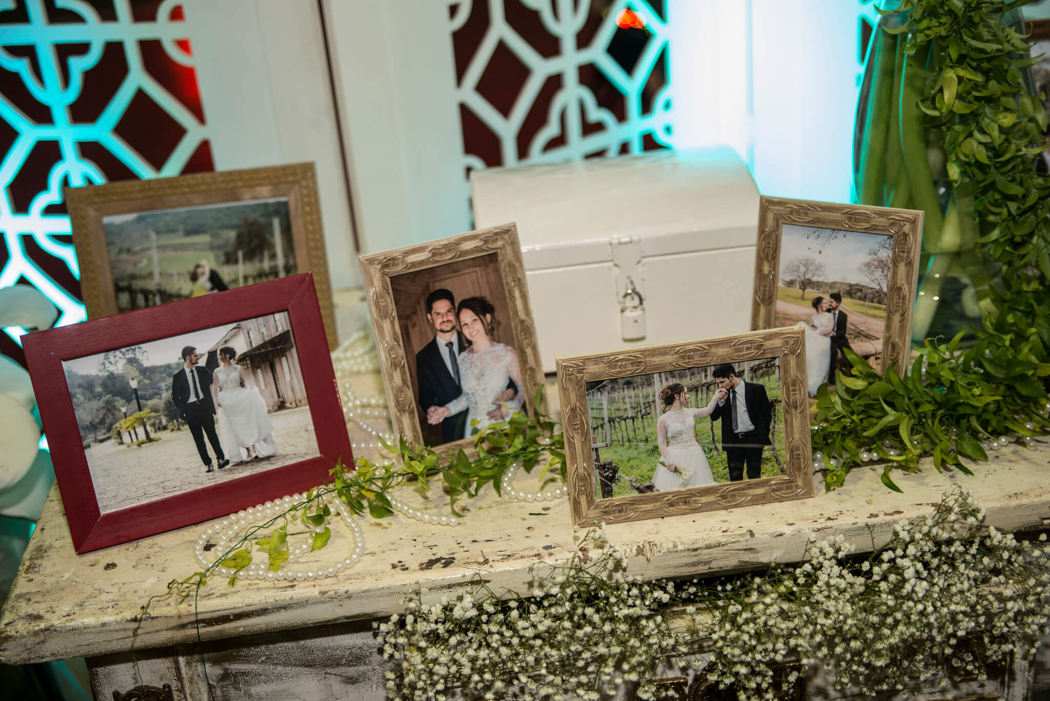 Pós cerimônia, todos foram recepcionados no Salão Comunitário de Vila Rica que fica bem em frente à Igreja. O salão estava muito lindo, a proposta da decoração escolhida foi pelo rústico, mas sem abrir mão da delicadeza.  Haviam quadros com fotos do belíssimo prewedding registrado pelas lentes talentosíssimas fotógrafa Fabíula Kerber que também registrou o grande dia.